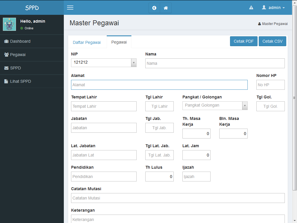 3. Aplikasi Surat Perintah Perjalanan Dinas ini dapat melakukan manajemen data karyawan atau pegawai