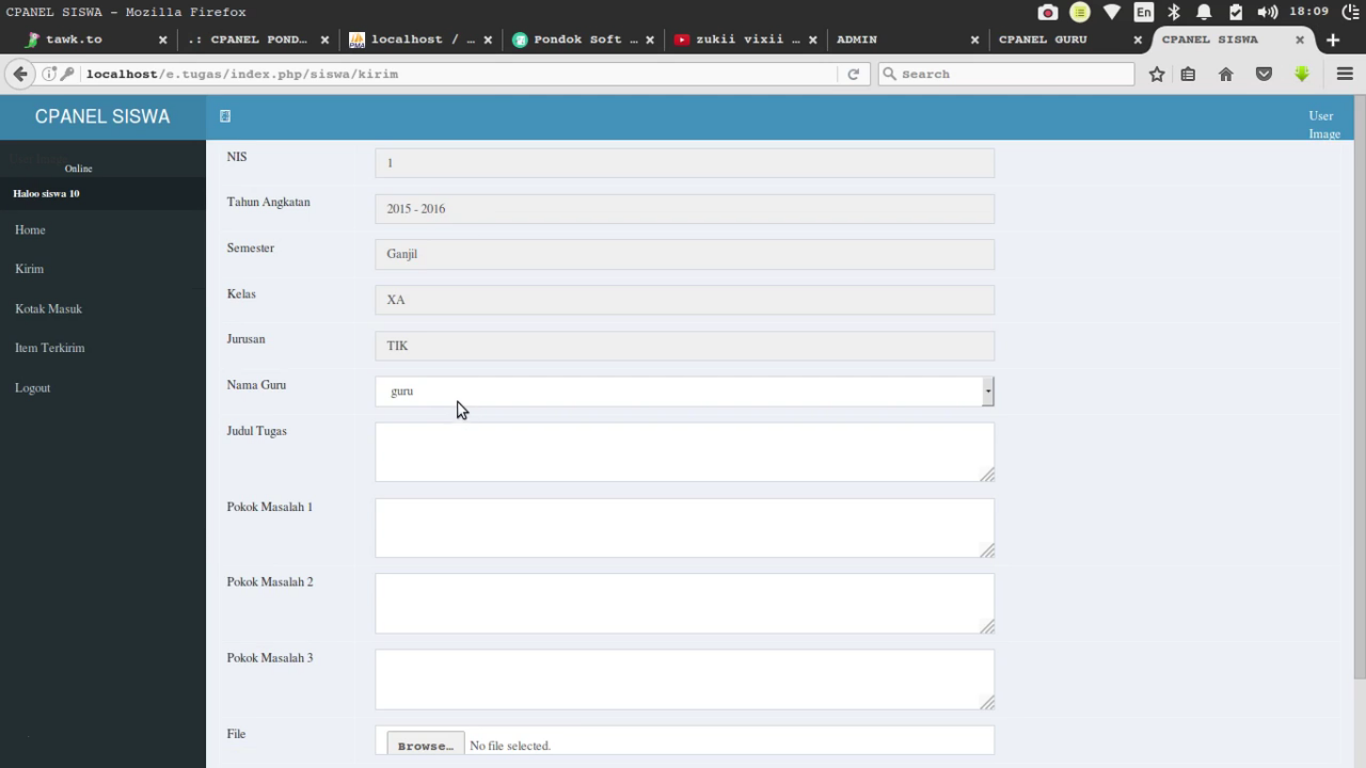 jika pokok masalah 1,2,3 dll sama denga yang ada di database maka sistem akan menolak otomatis