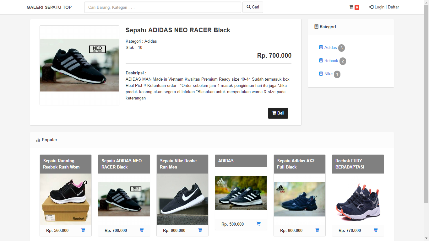 | Bahasa Pemograman | Php, Jquery, Css, Boostrap, javascript, Mysqli, dll |