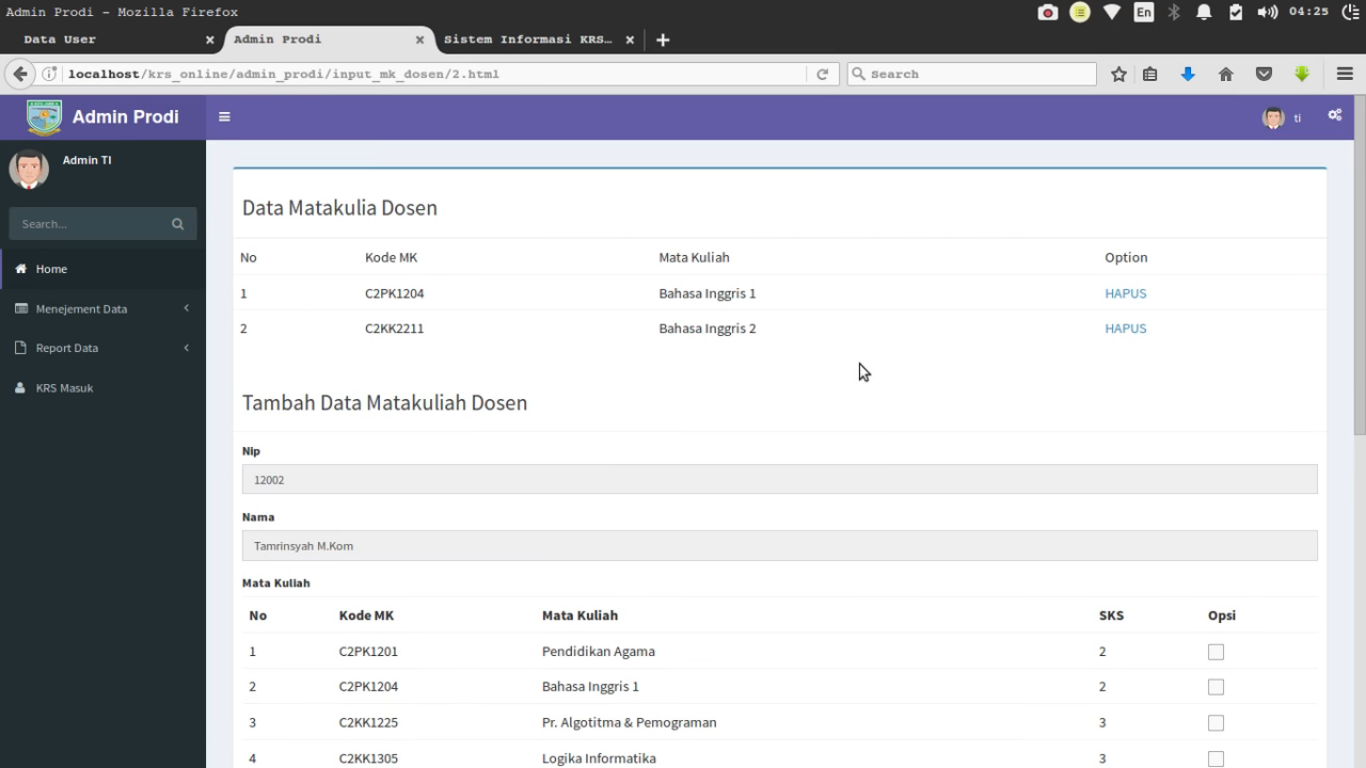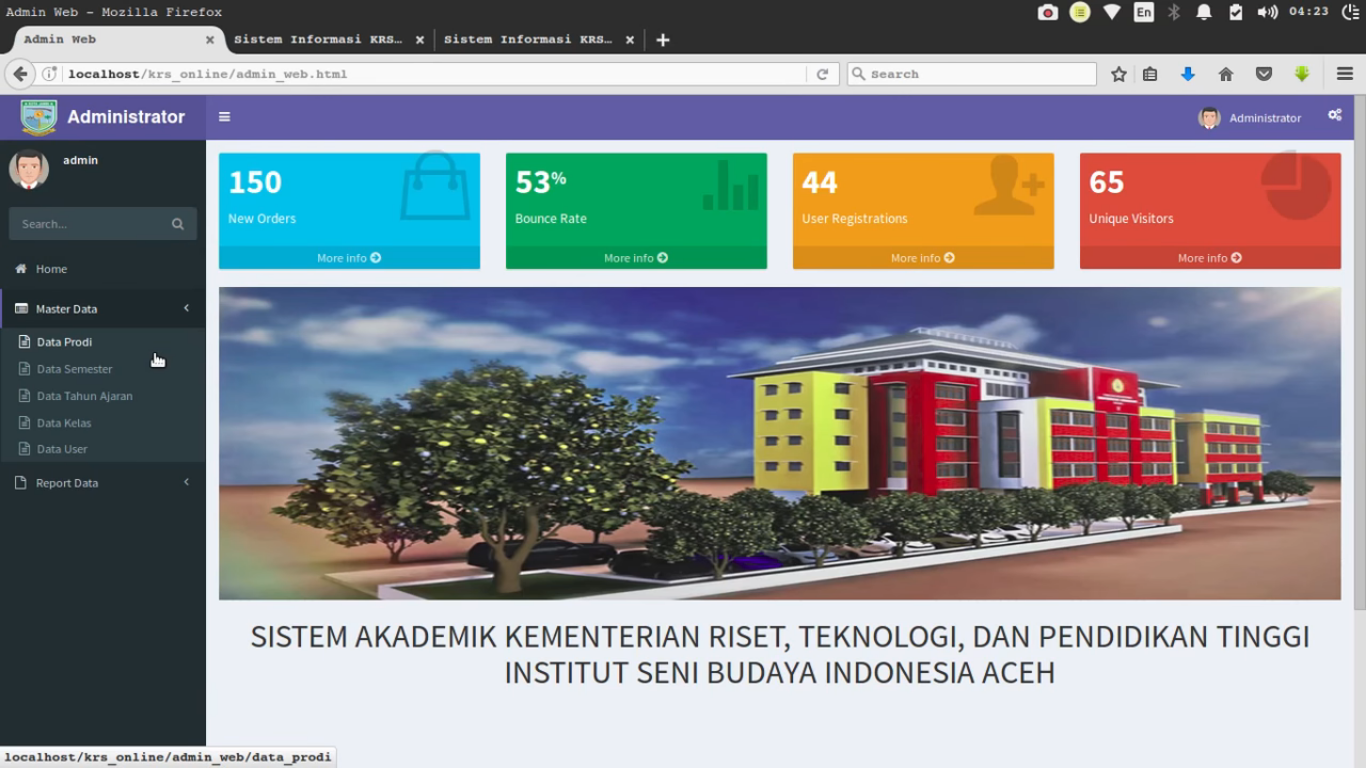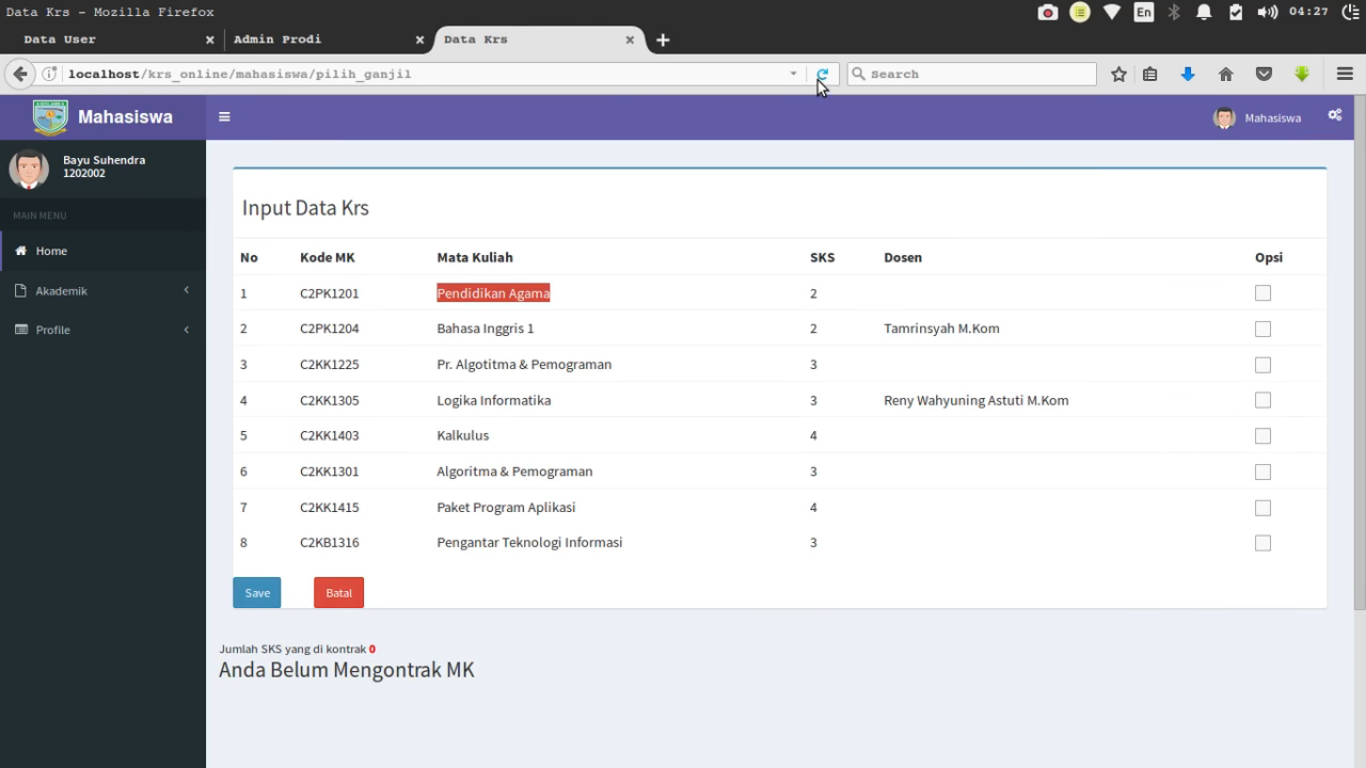 APLIKASI SISTEM AKADEMIK DAN KRS ONLINE BERBASIS WEB ini siap pakai atau pun di kembangkan sesuai dengan keinginan..