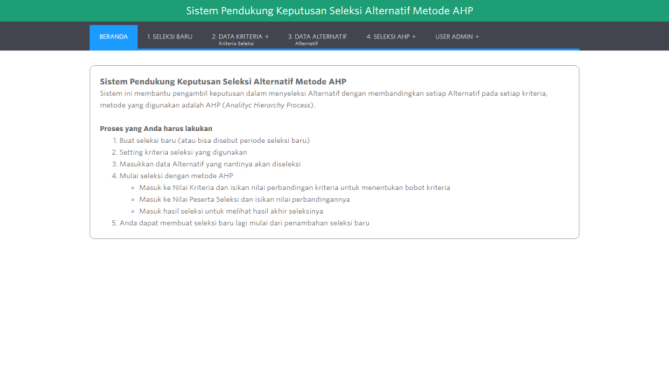 Aplikasi Sistem Pendukung Keputusan (SPK) dengan metode AHP (Analytic Hierarchy Process ).