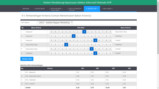 Aplikasi ini dapat diubah kriteria (ditambah maupun dikurangi) sesuai kebutuhan dengan fitur pengaturan kriteria yang digunakan untuk seleksi sehinga dapat digunakan untuk berbagai kasus seleksi.