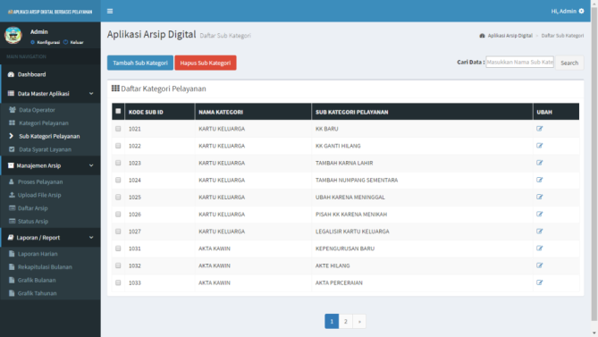 - Sub Kategori Pelayanan