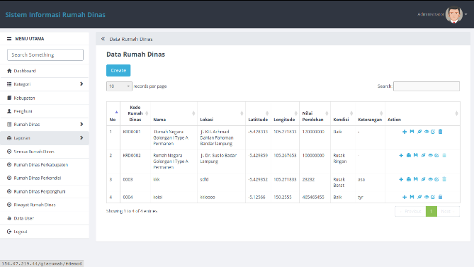 website ini di bangun untuk mendata seluruh rumah dinas per kabupaten saja. dan dapat mendata semua rumah dinas