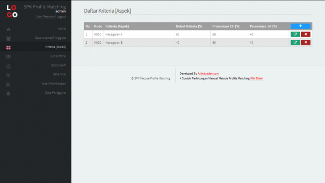 Sesuai ulasan diatas, aplikasi ini dapat diubah kriteria (ditambah maupun dikurangi) sesuai kebutuhan dengan fitur pengaturan kriteria yang digunakan untuk seleksi sehingga dapat digunakan untuk berbagai kasus seleksi.