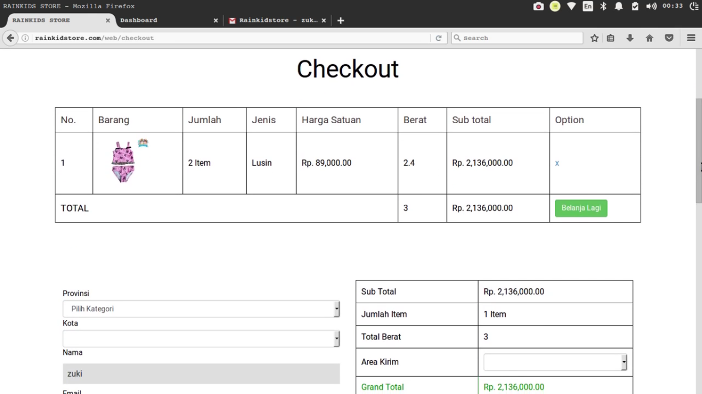 2.konfirmasi email, total belanja, dll, di kirim di email