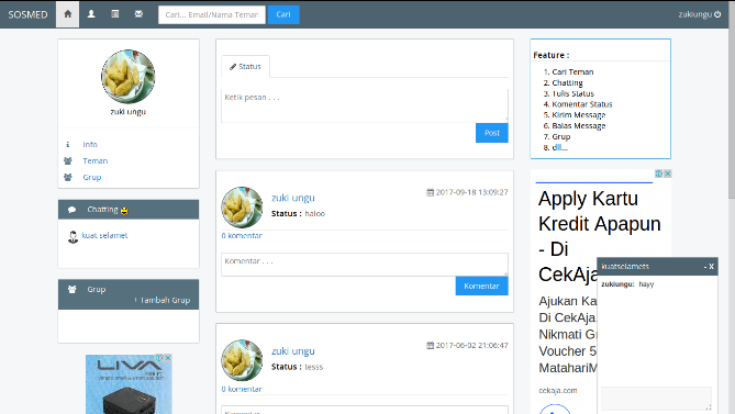 Download aplikasi sosial media berbasis web dengan beberapa fitur nya antara lain :